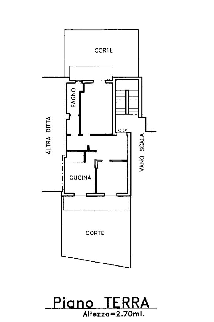 Ingresso sfruttabile, due camere di buone dimensioni, cucina abitabile, bagno e dispensa.