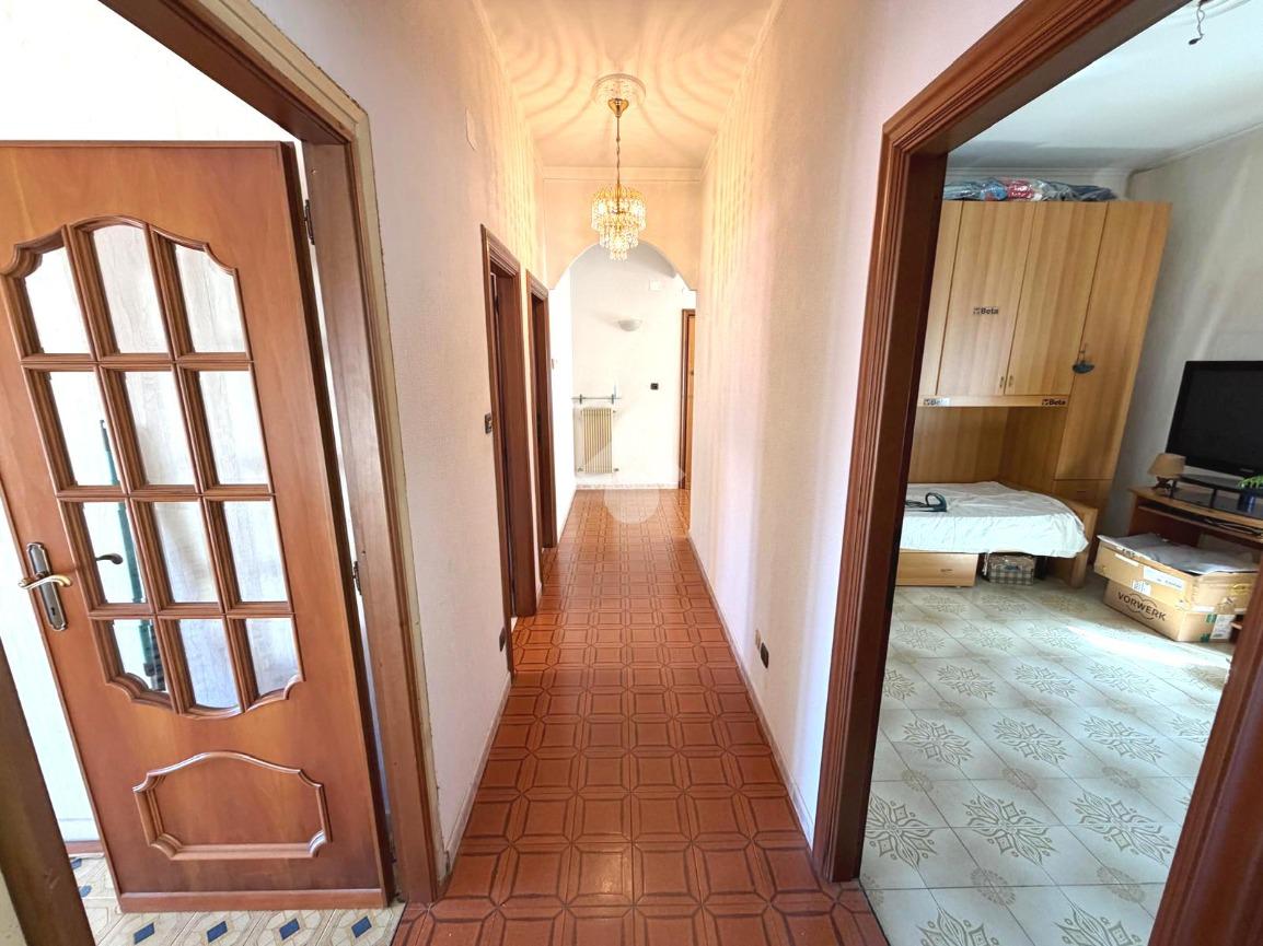 Come pertinenze l'abitazione dispone di un ampio balcone ad angolo con doppio accesso dal soggiorno e un box di buone dimensioni posizionato nei fondi del condominio stesso.